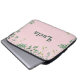 Custom name green leaves on pink laptop sleeve
