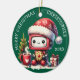 Create a unique green personalised ornament with the Merry Christmas greetings and a cute robot wearing a Santa hat, holding a cookie, and sitting near a Christmas tree, a cup of hot cocoa, and a gift box. It is a fun idea for a Christmas keepsake for kids and everyone who loves robots. The template makes it easy to add your name and type a year.