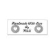 A handmade with love stamp with custom name and hearts either side. Great for handmade products and gifts