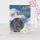 This adorable child's birthday greeting card features a cute grey guinea pig with white daisies on the cover. Personalise the template text on the front and inside, remove any text or click customise to select a font style, size, and colour you prefer.