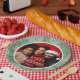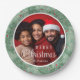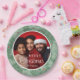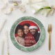 Modern Christmas pine branches and winter foliage bordered custom paper plates will add a festive touch to all you holiday get togethers. Easily customise this plate with your family name and photo.