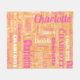 This custom name hot pink and orange repeating pattern personalised blanket is a heartwarming and unique keepsake that celebrates her name in a modern and unique design. She will love the trendy typography graffiti pattern featuring shades of hot pink, orange, and white, and her name in a typography pattern of different fonts. This beautiful blanket is warm and cosy and is perfect for her birthday, graduation, as a Christmas gift, or other special occasions. Giving your family a gift of their own family name -- a heartfelt expression of love, affection, and the connection with your heritage. Please message me if you need help with any customisations!