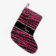 Custom name hot pink zebra stripes black glitter small christmas stocking