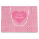 Make every Valentine’s gift unforgettable with this pink and red hearts personalized gift bag, designed to turn simple wrapping into a heartfelt expression of love. Featuring a classic romantic heart pattern and meaningful “I Love You” text, this gift bag adds emotion and intention before the present is even opened.