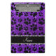 Custom name indigo purple glitter black dog paws mini clipboard