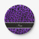 Custom name indigo purple glitter cheetah print paper plate
