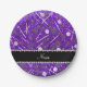 Custom name indigo purple glitter lacrosse sticks paper plate