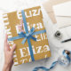 Custom Name Initial Monogram Gold White Gift Wrapping Paper