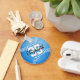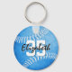 This softball keychain features the image of a blue softball with easily customizable player's name and jersey number - by katz_d_zynes