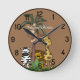 Personalised Jungle Safari Wall Clock with a giraffe, lion, zebra, and monkey. The perfect clock for a little boy's room.