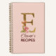 Custom Name Letter E Gold Blush Pink Roses Recipe Notebook