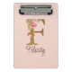 Custom Name Letter F Gold Foil Blush Pink Roses Mini Clipboard