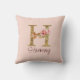 Custom Name Letter H Gold Foil Blush Pink Roses Cushion