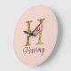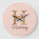 Custom Name Letter H Gold Foil Blush Pink Roses Large Clock