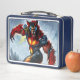 Custom Name Lunch Box, Colourful Werewolf Halloween Metal Lunch Box graphic print design. Cyborg werewolf design. Featured is blue lunch box with mythical ferocious werewolf transformation, and more colours lunch boxes are available. Customise and personalise with custom name, monogram or images.