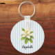 Custom Name Magnolia Painting Nautical Stripe Key Ring