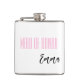 Flask for the maid of honour is shown in white with black and pink text and has a sample name.