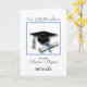 A graduation card with a black cap and tassel. A blue ribbon is tied around the diploma and a matching blue frame around the image. Customise with the name of the Master's Degree graduation for a truly personal card.