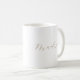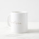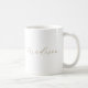Simple white minimalist coffee mug personalised with name in light golden brown delicate cursive handwriting / script lettering. Shown is the editable name, Madison. To change the lettering colour and/or style, or to add additional text or images, use the Design Tool. (Click "Personalise this template", then "Edit using Design Tool".) Need help? Send us a message. Designed by 368MyName.