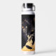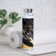 Custom Name Modern Wedding Black Golden Feather Water Bottle
