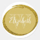 Custom Name Monogram Calligraphy Gold Glitter Ring Classic Round Sticker