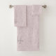 Custom Name Monogram Elegant Pink Grey Marble Bath Towel Set
