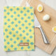 Custom name monogram modern pattern yellow blue kitchen towel.