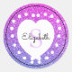Custom Name Monogram Pink Purple Glitter Heart Classic Round Sticker