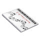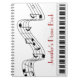This notebook features a full piano keyboard on the cover, and a swirl of music notes on the top. There is a fully customisable place for or a name or text of your choice.