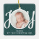Custom Name My First Christmas Photo Green Ceramic Ornament