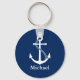 Custom Name Nautical Navy Blue with White Anchor Key Ring