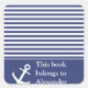This book label has blue and white stripes. At the bottom is a white ship's anchor. The book plate sticker says ' This book belongs to'. You can personalise the book label with the recipient's name.