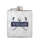 Custom Name Navy Blue Clubs And Ball Hip Flask