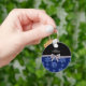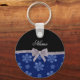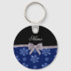Custom name navy blue glitter flowers silver bow key ring