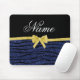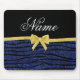 Custom name navy blue glitter zebra stripes bow mouse mat