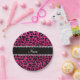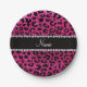 Custom name neon hot pink glitter cheetah print paper plate