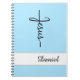 This notebook is shown with a faithful Jesus Cross print and is shown in a light blue colour with an accent strip with a custom sample name.