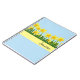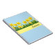 Notebook shown with a blue background colour with a lovely yellow daffodil flowers graphic print and a name sample.