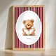 This sweet teddy bear illustration shows a cozy little bear reading a book, creating a warm and comforting atmosphere that’s perfect for a nursery or child’s room. The soft, hand-drawn style combined with the classic striped background gives this artwork a timeless and gentle look.