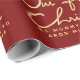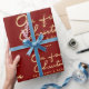 As new parents, celebrate your first Christmas as mummy and daddy to your newborn by wrapping Christmas gifts for your spouse with this unique personalised gift wrapping paper. The design features "Our First Christmas" in a beautifully hand-lettered faux gold font and the text " AS MOMMY & DADDY TO ", baby name and the year on a deep red background. Personalise the design by replacing the sample baby name and the year.