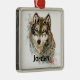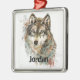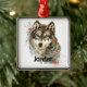 Custom Name Personalised Grey Wolf Metal Tree Decoration