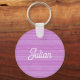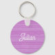 Custom name pink and white stripes key ring