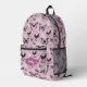 This allover print backpack features a pink butterfly pattern that is perfect for school children, ensuring their essentials can be carried with style and comfort. Designed for practicality, this backpack features adjustable padded shoulder straps, a spacious interior, a mesh side pocket, and an internal identification label. It offers ample storage space for books, snacks, and other essentials without compromising on its lightweight structure. The text template enables you to easily add your child's name on the patch.
