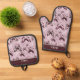 Custom Name Pink Butterfly Pattern Oven Mitt & Pot Holder Set