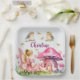 Introducing our Custom Name Pink Fairy Mushrooms paper plate! With a beautiful fairy watching dragonflies while little birds are singing, surrounded by lovely pink tulips and a watercolor pink House mushroom, this paper plate brings charm and enchantment to any party!