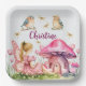 Custom Name Pink Fairy Mushrooms Paper Plate