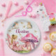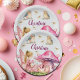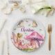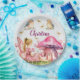 Custom Name Pink Fairy Mushrooms Paper Plate
