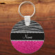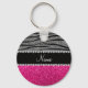 Custom name pink glitter light grey zebra stripes key ring