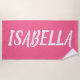 personalised beach towel custom gift, personalised name bath trip towel, custom pool towel for summer, custom beach towel with name, outside birthday vacation trip gift, custom beach towels personalised towel, vacation gift personalised beach towel, custom name towel customised towel, custom towel bridesmaid gift present, best birthday gift personalised towel, pink beach towel, bright easy to read beach towel, fun vacation trip towel, pretty beach towel