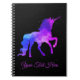 Show your style with this personalised Unicorn notebook! This design features a beautiful purple and pink galaxy unicorn pattern on a dark stars/space black background. There is a spot to customise it with your own name or text, the default text is pink cursive print. Just hit the Personalise button to enter in your own text. You can also change the font, and font colour if you wish by hitting the Customise button. Makes a great gift or journal for Unicorn, fantasy, mythology, Pegasus, or horse lovers! This design is also available on matching pens, tote bags, stickers, and other items.